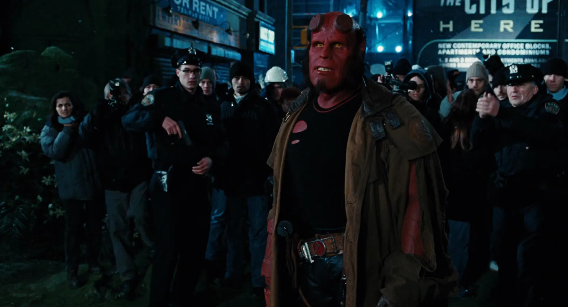 Cast: Ron Perlman as Hellboy, Selma Blair as Liz Sherman, Doug Jones as Abe Sapien, John Alexander as Johann Krauss / Bethmoora Goblin, Seth MacFarlane as Johann (voice), Luke Goss as Prince Nuada, Anna Walton as Princess Nuala, Jeffrey Tambor as Tom Manning, John Hurt as Trevor Bruttenholm, James Dodd as Johann Krauss, Brian Steele as Wink / Cronie / Spice Shop Troll / Cathedral Head / Fragglewump, Andrew Hefler as Agent Flint, Kamarás Iván as Agent Steel, Mike Kelly as Agent Marble, Jeremy Zimmermann as Auctioneer, Santiago Segura as Distinguished Buyer, Roy Dotrice as King Balor, Aidan Cook as Two-Headed Shop Owner, Jeanne Mockford as Bag Lady, Montse Ribé as Young Hellboy, Elek Ferenc as Fat Slob, Alex McSweeney as Policeman, Justin Pierre as Policeman, Matt O'Toole as Limb Vendor, Jamie Wilson as Cat Vendor, Clive Llewellyn as Tadpole Vendor, Sándor Svigelj as Bagpipe Player, Brian Herring as Silkard / Fish Vendor, Pálma Pásztor as Mummy Vendor, Jimmy Kimmel as Jimmy Kimmel, Tim Flavin as Newscaster, Belinda Henley as Newscaster, Blake Perlman as Newscaster, Matt Rippy as Newscaster, Judit Viktor as Lady with Dog, Szonja Oroszlán as Woman with Baby, Michael Mehlmann as Auction Bidder Man, Todd Williams as Auction Bidder Man, Beatrice Zentai as Auction Bidder Woman, Peter Horkay as Steward, Richard Rifkin as TV Pundit, Guillermo del Toro as Creature Vocals (voice) (uncredited), Tim Larsen as Street Thug (uncredited), Gavin McKenzie as Auction Room Steward (uncredited), Julia Papp as Reporter (uncredited)
